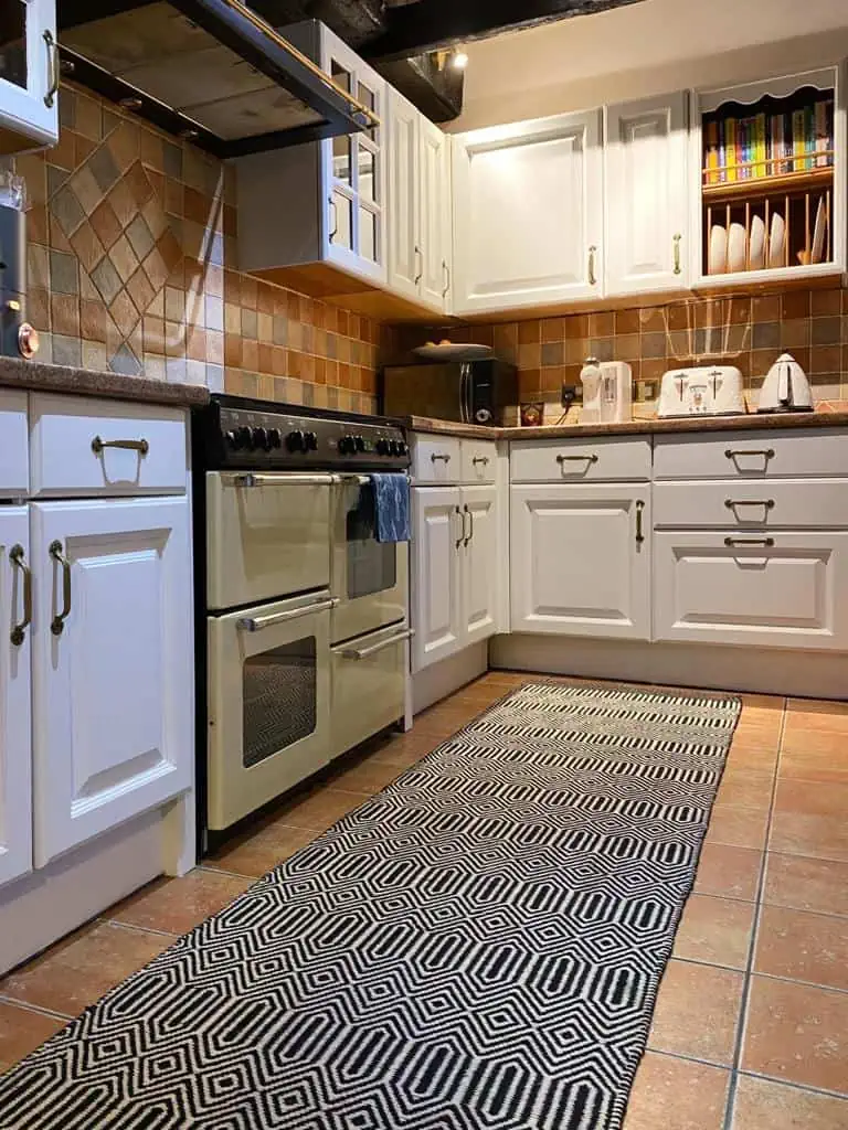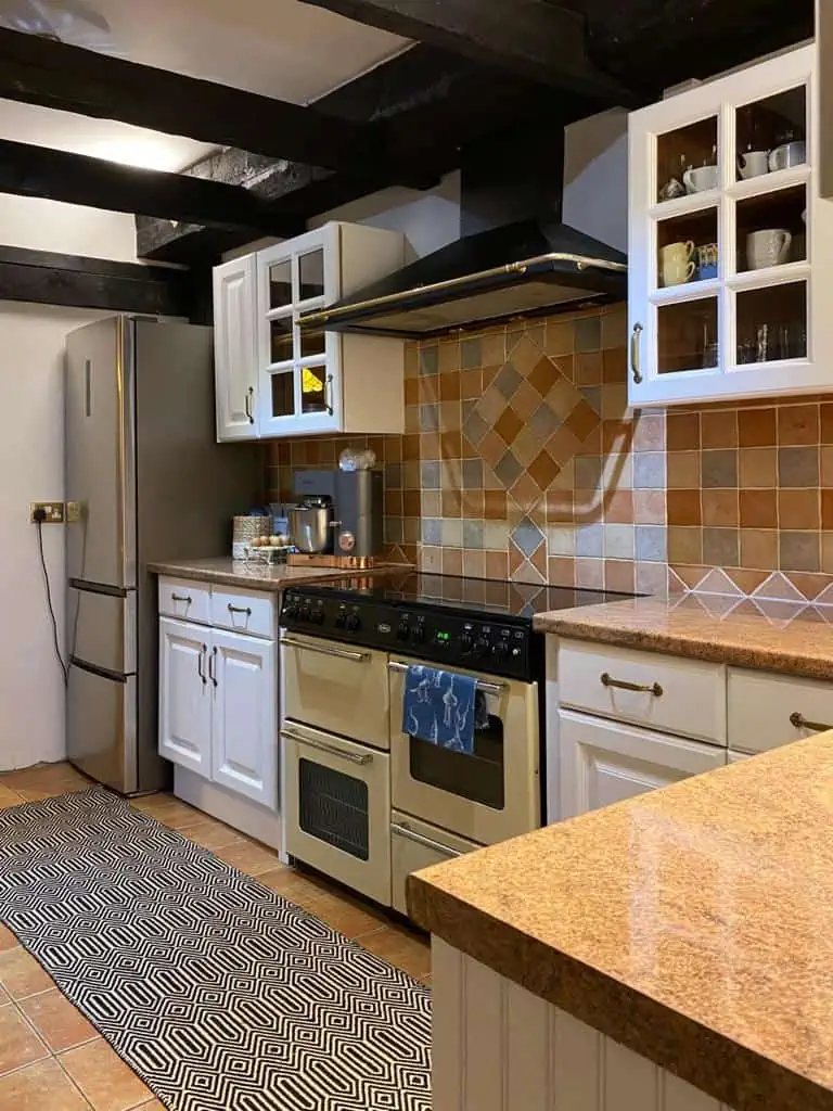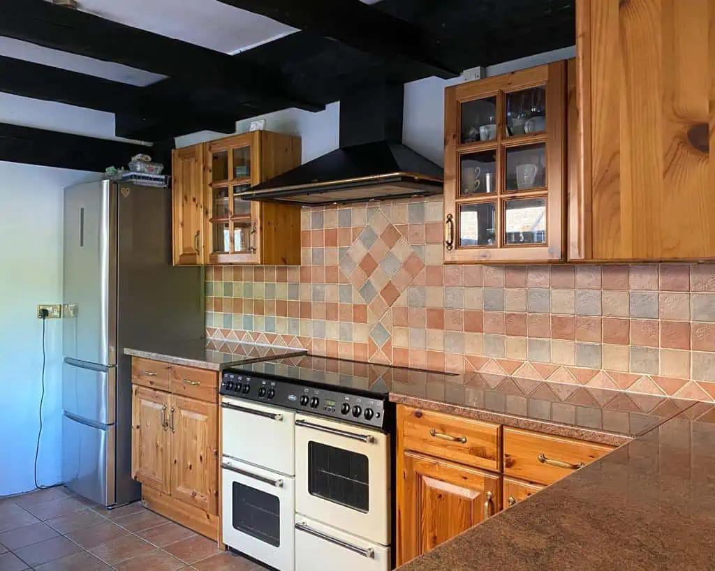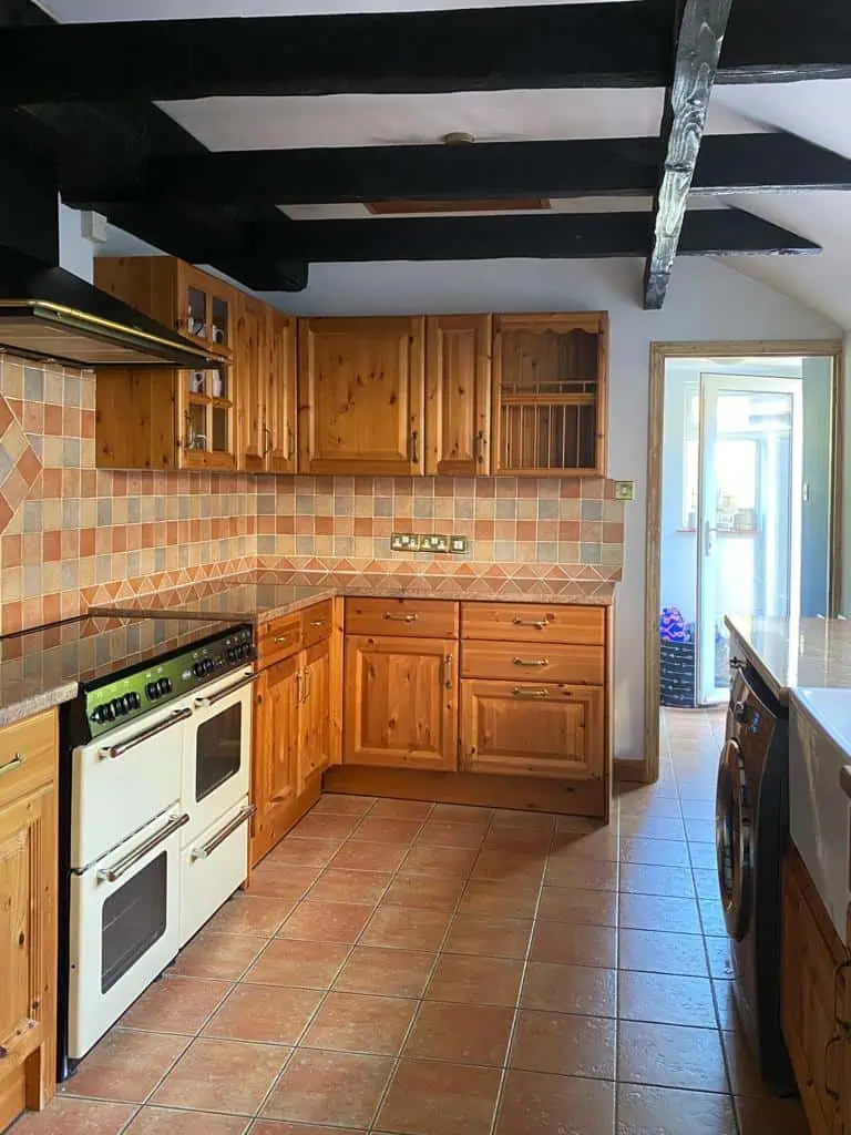 This traditional kitchen was very brown and red thanks to the tile and unit finish. By painting the units white it gave it some much needed contrast which really made the ochre tones pop.